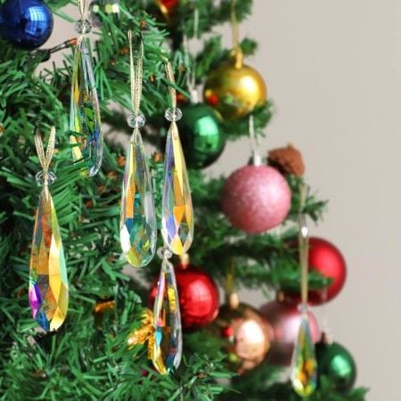 Crystal Glass Christmas Ornaments, 4Pcs Teardrop Prism Hanging Crystals for Christmas Tree (Crystal AB)