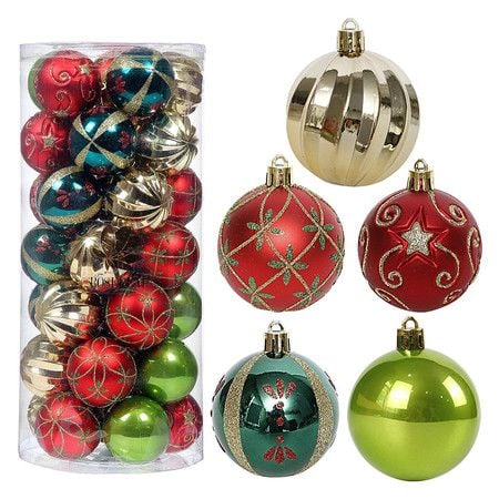Christmas Tree Ornaments, 30 Pieces 2.36 Inch Christmas Balls Decoration Set, Red Green and Gold Christmas Balls, Shatterproof Hanging Ornaments Set for Tree