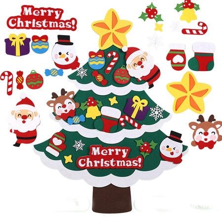 70*90cm NON WOVEN Christmas Tree DIY Kids Christmas Craft Kit Christmas Tree 21 Pieces Removable Kids Christmas Tree Ornaments gifts