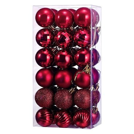 36 Pieces Christmas Ball Ornaments, Christmas Decorations Tree Balls for Tree Ornaments Holiday Wedding Party Decoration Hooks 1.57 Inch (Red)