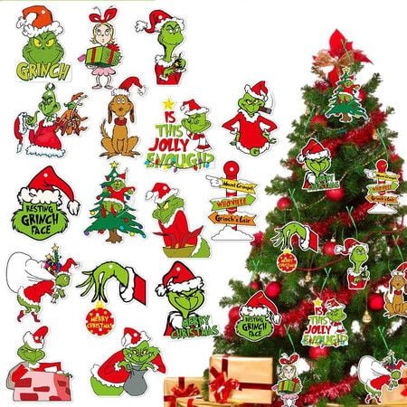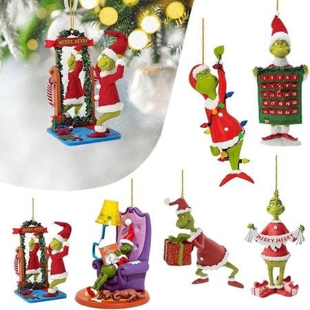 Grinch-Themed Christmas Tree Ornaments Set 6 Acrylic Hanging Decorations for Holiday Tree and Home Decor