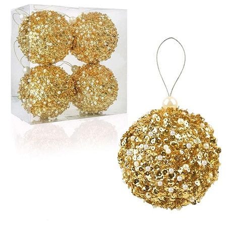 3.2 Inch Christmas Ball Ornaments Set of 4 Shatterproof Christmas Tree Decorations for Christmas Trees Wedding Party Holiday Table Decoration for Small Trees (Gold)