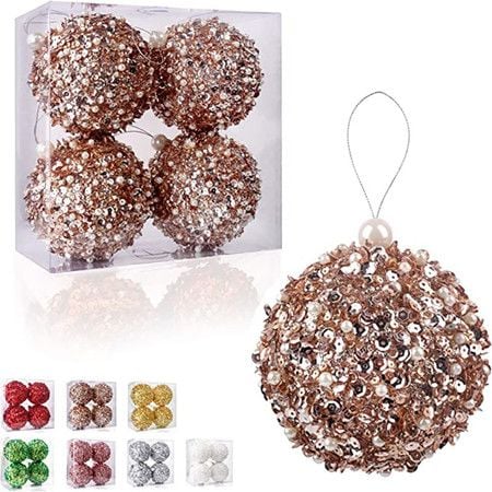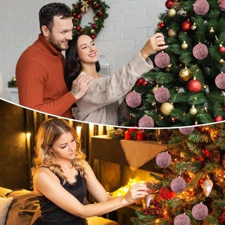 6 Pcs 8cm Christmas Tree Ball Ornaments Glitter Sequin Foam Ornaments Hanging Christmas Ball Decorations for Xmas Wedding Party Holiday Decor (ROSE GOLD)