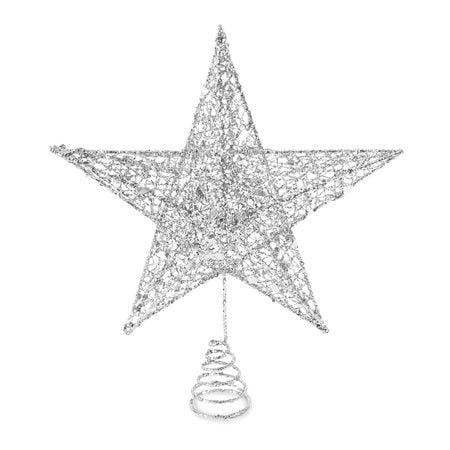 Christmas Tree Topper,10 Inches Silver Glitter Christmas Tree Ornaments Metal Hollow Star for Christmas Tree Home Decoration