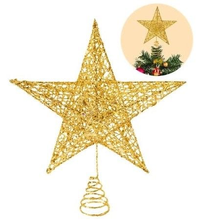Glittered Christmas Tree Topper,10 Inches Gold Glitter Christmas Tree Ornaments Metal Hollow Star for Christmas Tree Home Decoration