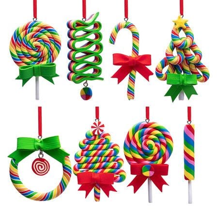 8Pcs Christmas Lollipop Ornaments, Rainbow Lollipop Hanging Ornaments, Polymer Clay Ornaments for Christmas Tree Party Decoration