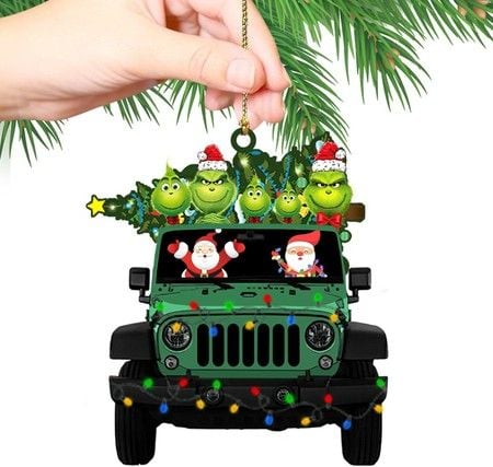 Christmas Grinch Ornament Family Truck Christmas Tree Ornaments Gift Decoration 3X3 Inches-Style A