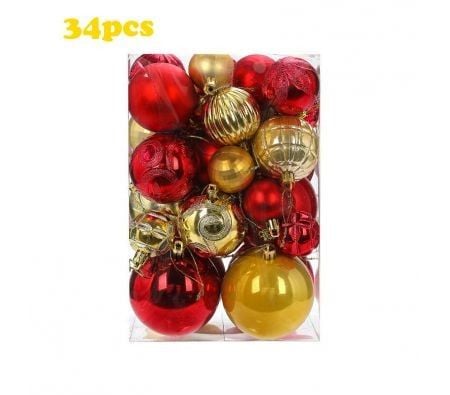 34pcs Christmas Tree Ornaments Set Shatterproof Holiday Ornaments Balls Color Red+Gold