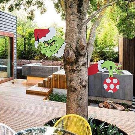 Grinch Christmas Decoration Yard Fence Peeker Yard Art Ornaments Christmas PVC Wall Signs