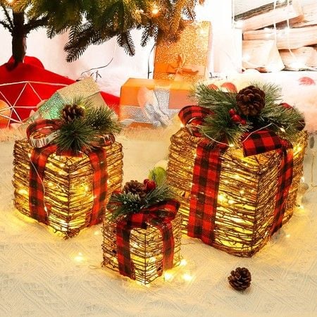 Christmas Lights LED Lighted Gift Boxes Tree Decorations Outdoor Indoor Light Up Presents Ornaments Warm White Fairy Lighting Wedding Holiday Garden