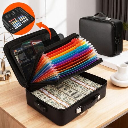 Fireproof Document Box with Combination Lock Fire Proof Waterproof File Organiser Home Travel Safe Hard Case Money Cash Storage Bag Portable Black