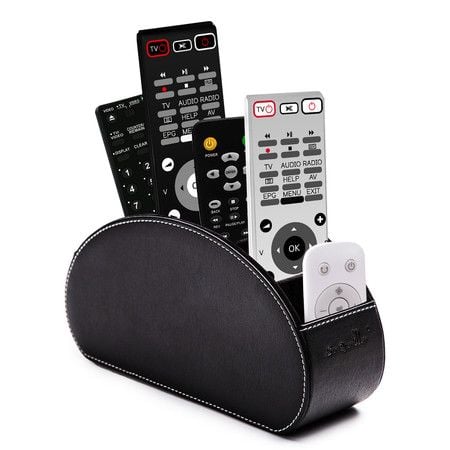 Remote Control Holder, Vegan Leather TV Remote Caddy Desktop Organizer 5 Compartments Fits TV Remotes, Media Controllers, Office Supplies, Makeup Brush