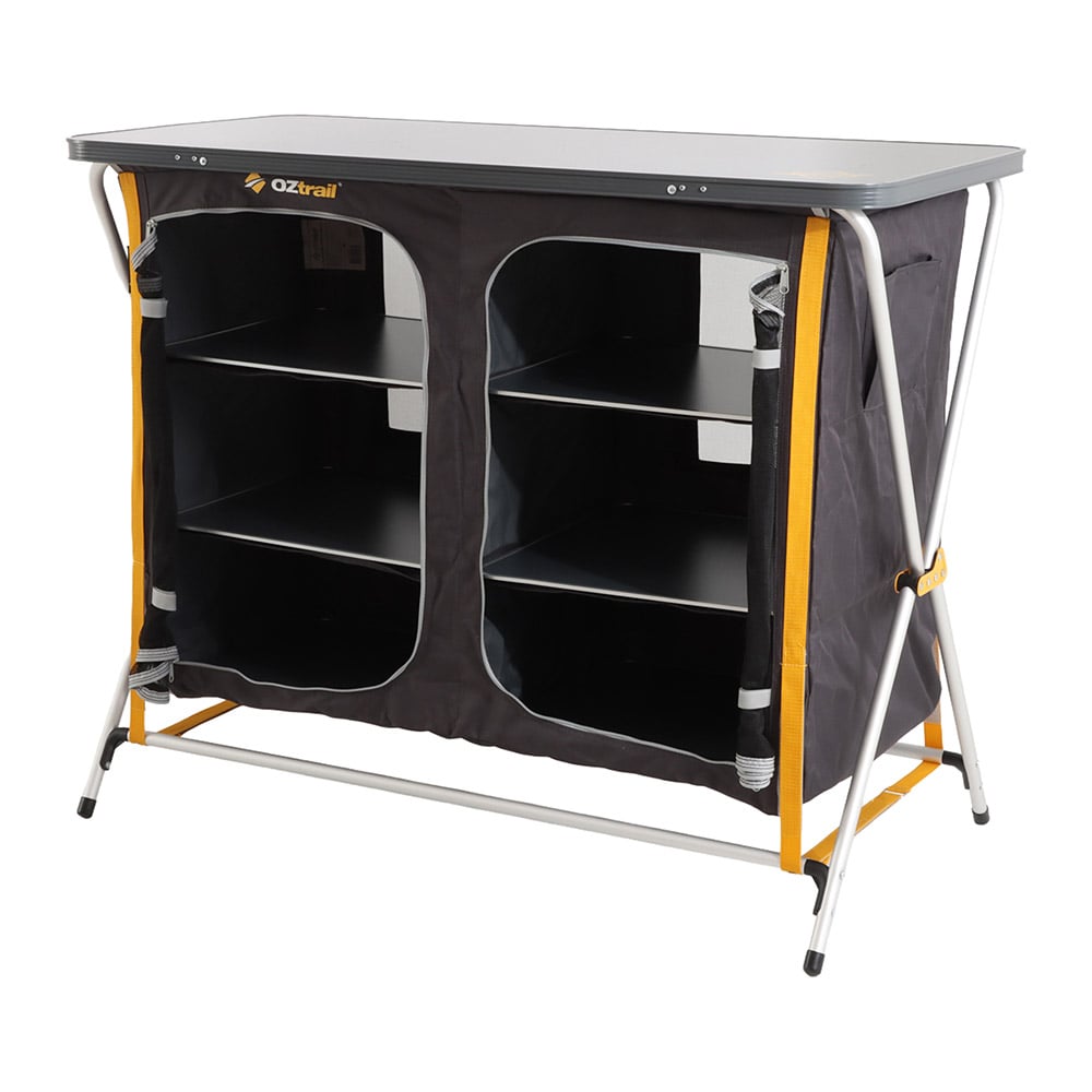 OZtrail Deluxe 3-Shelf Foldable Double Cupboard with Camping Table