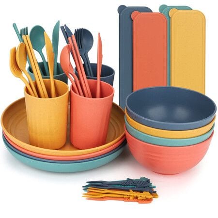 Wheat Straw Unbreakable Dinnerware Sets,Reusable Wheat Straw Plates and Bowls Sets,Travel Camping Cutlery Set,Dishwasher Microwave Safe
