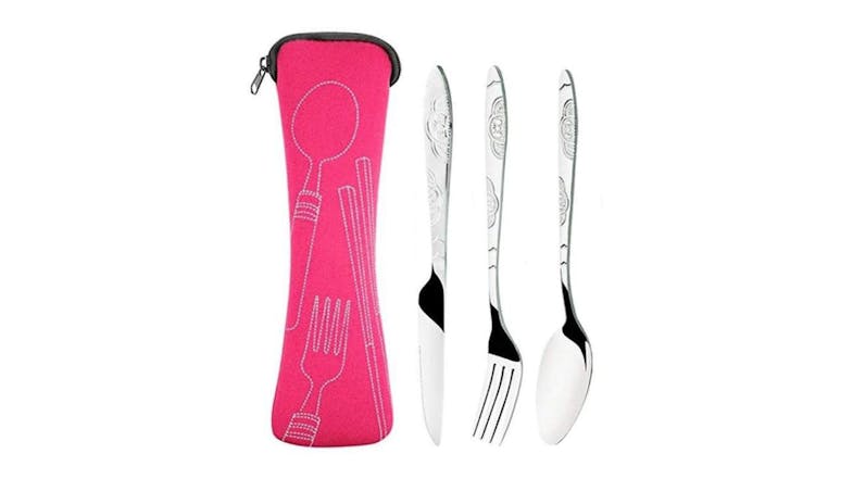 HOD Portable Camping Stainless Steel Cutlery Set - Pink