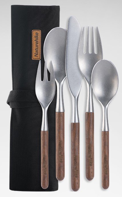 Naturehike Stainless Walnut Wood Premium 5-Piece Cutlery Set