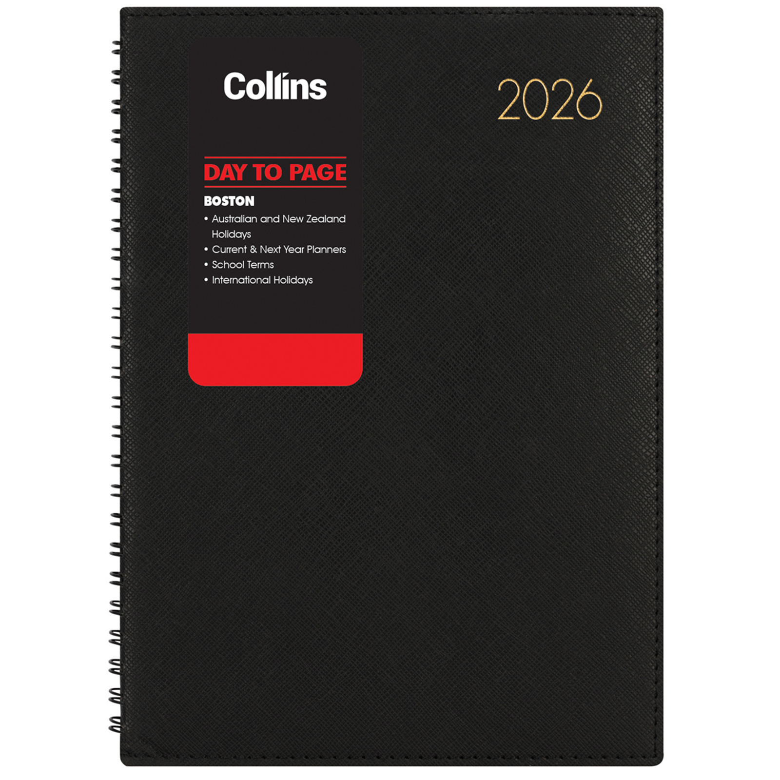 Collins: 2026 Boston A51 Day To Page Wiro Bound Diary - Black