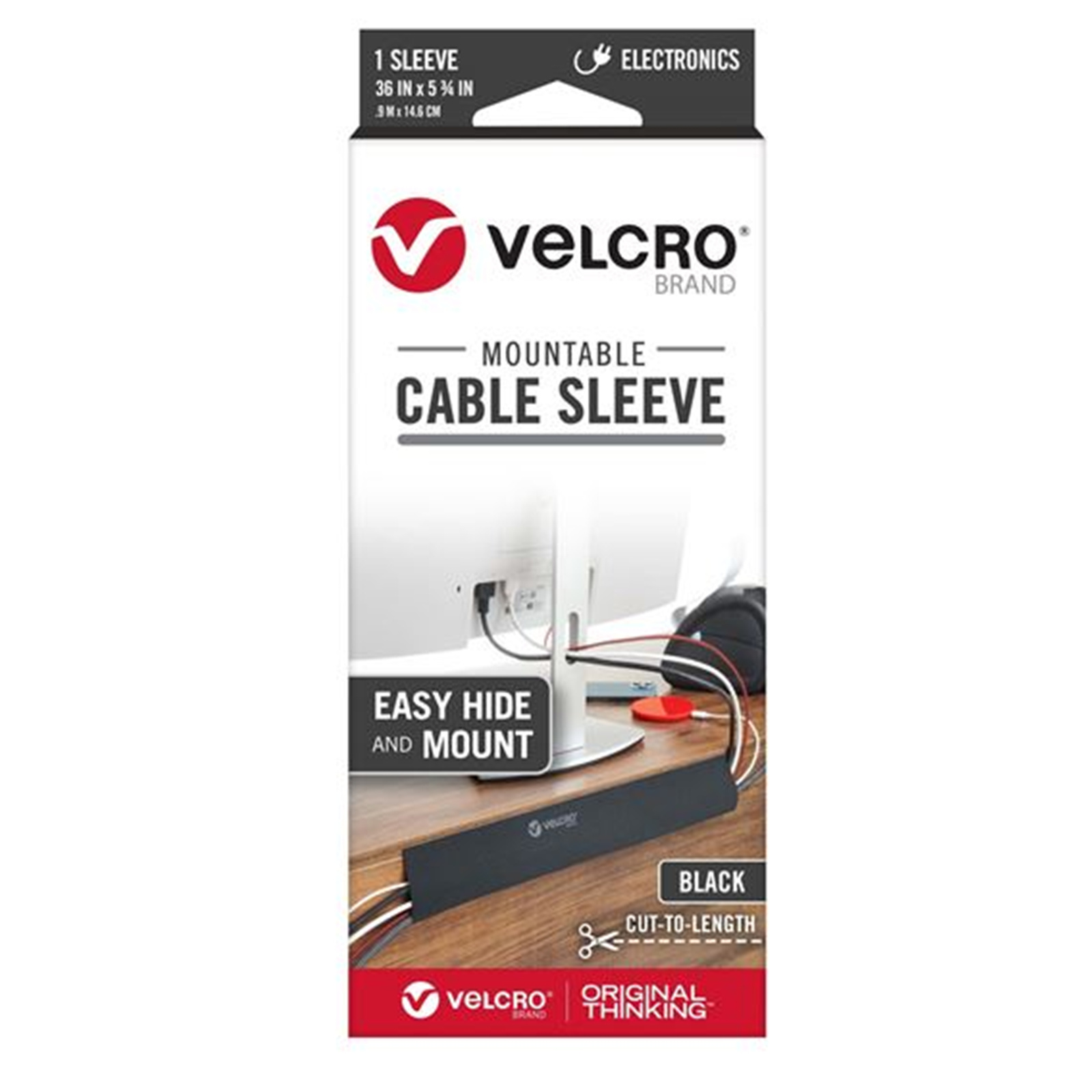 Velcro VEL30799 Cable Management Sleeve - 90cm - Black - Pair Mountable - Removable Adhesive - Mount Electrical Cords Out of Sight - Easy to Add / Change Cables - Under Desk Solution - 146mm Width