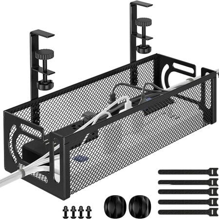 Under Desk Cable Management Tray,Cable Organizer,Cable Management Box,For Desk,Under Desk Storage For Office Home Desk Cable Raceway (Black)