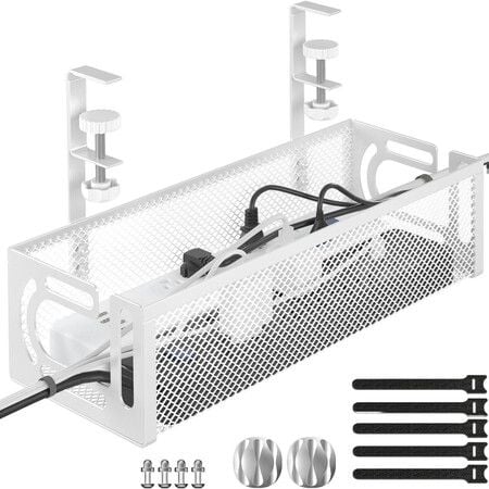 Under Desk Cable Management Tray,Cable Organizer,Cable Management Box,For Desk,Under Desk Storage For Office Home Desk Cable Raceway (White)