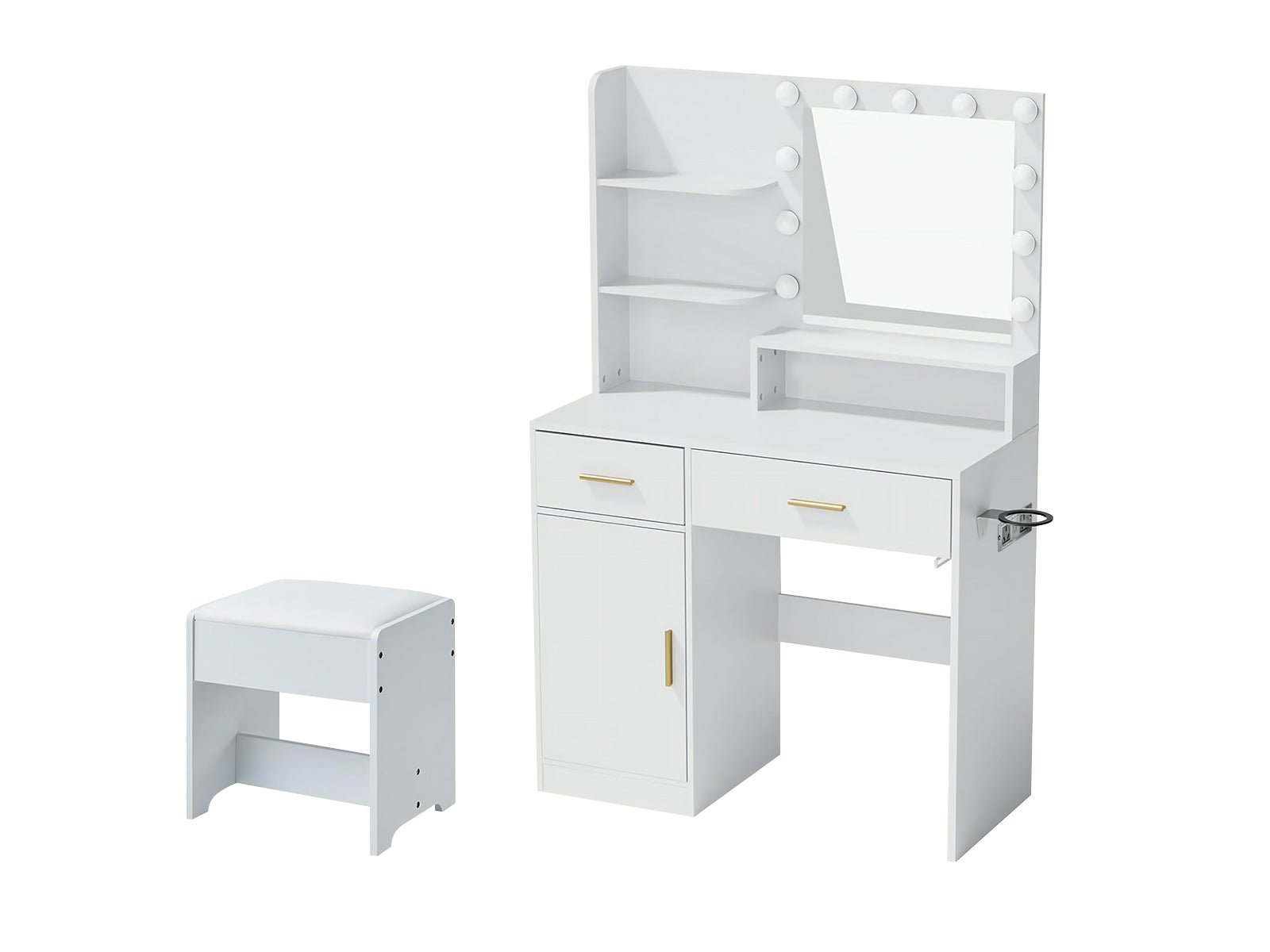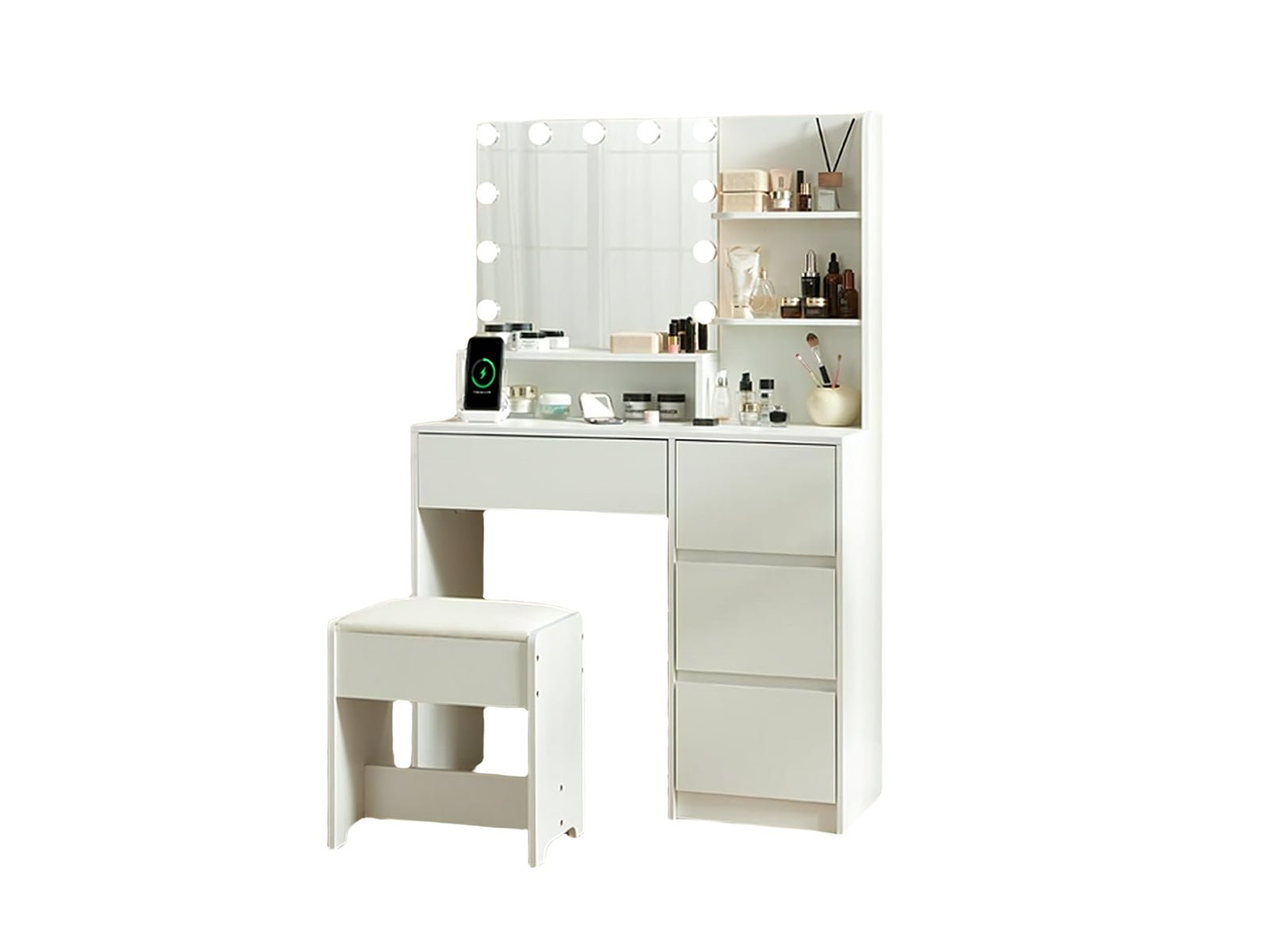 Makeup Vanity Desk Set with Mirror & Light - White