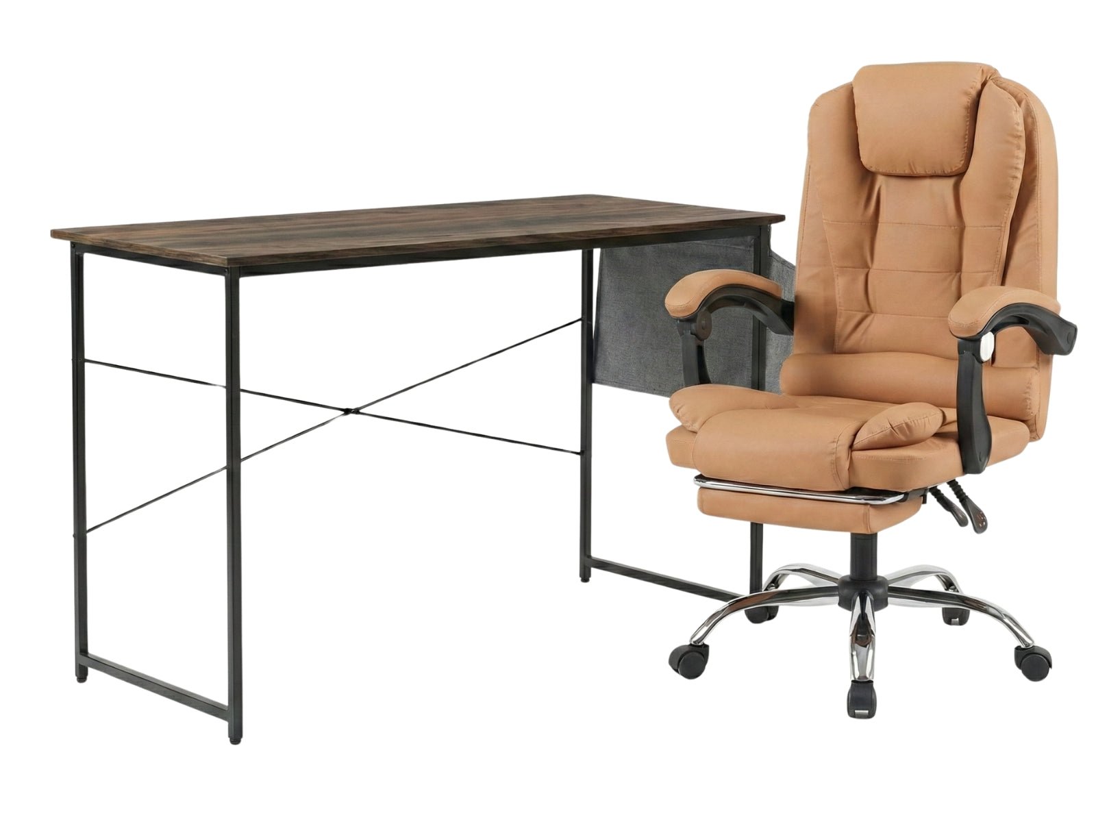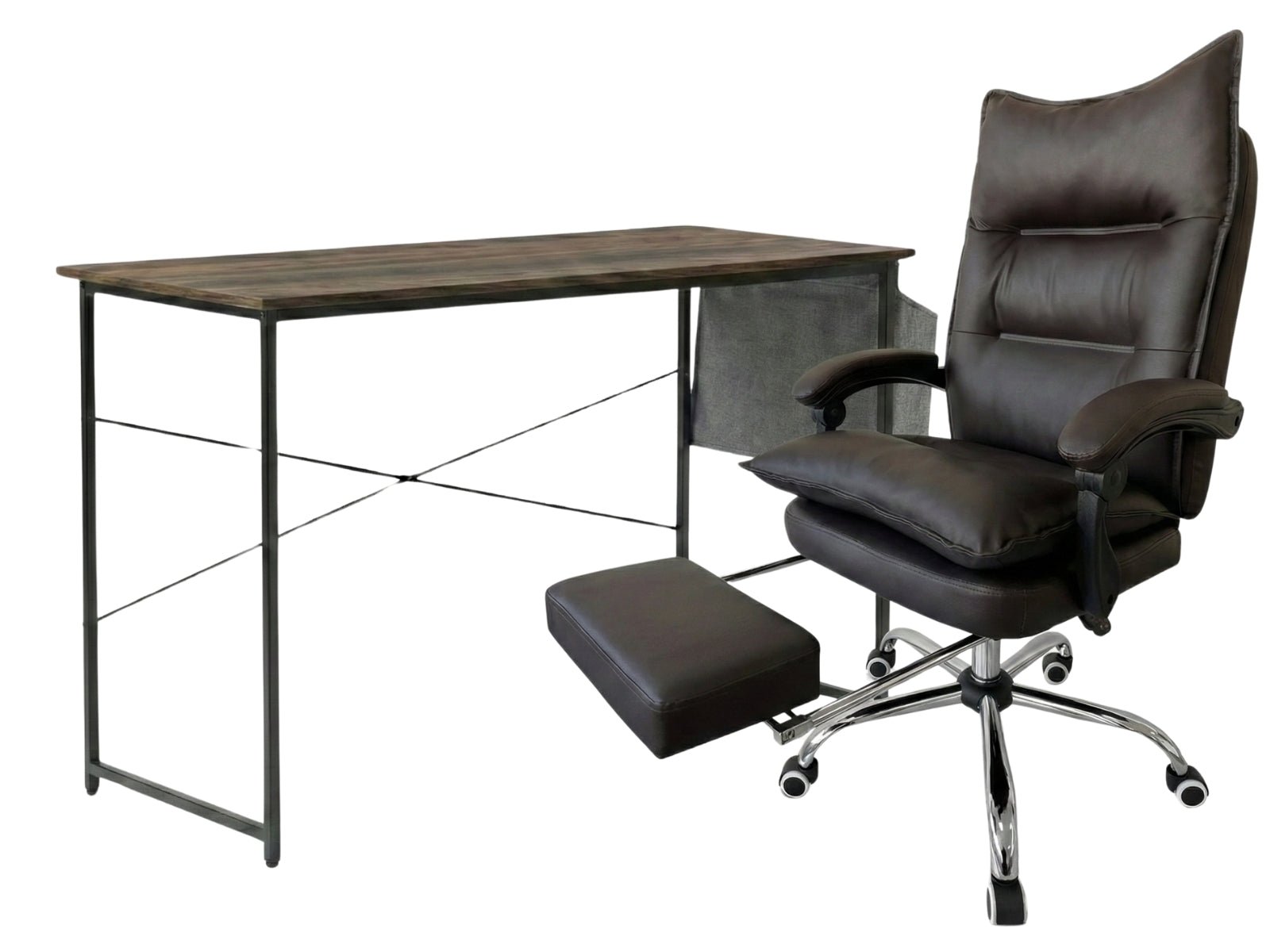Koa Desk With Storage Bag & New Markus Office Chair with Footrest PU Coffee (Combo)