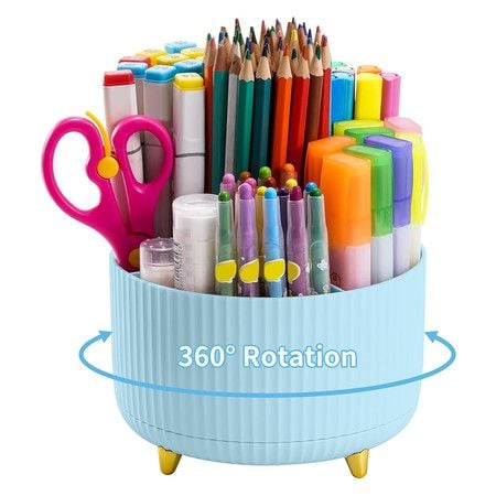 Desk Pencil Pen Holder,5 Slots 360°Degree Rotating Pencil Pen Organizers for Desk,Desktop Storage Stationery Supplies Organizer,Cute Pencil Cup Pot for Office,School,Home,Art Supply (Light Blue)
