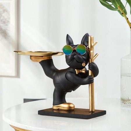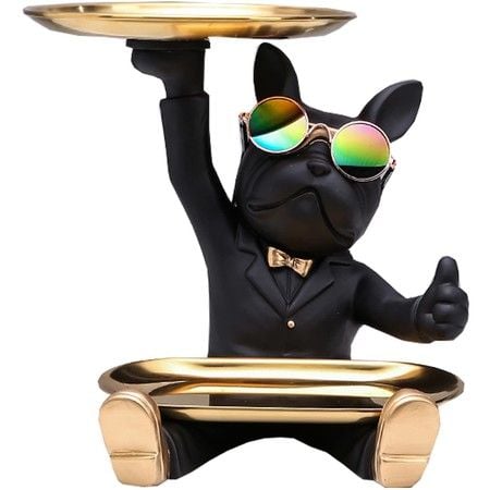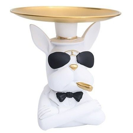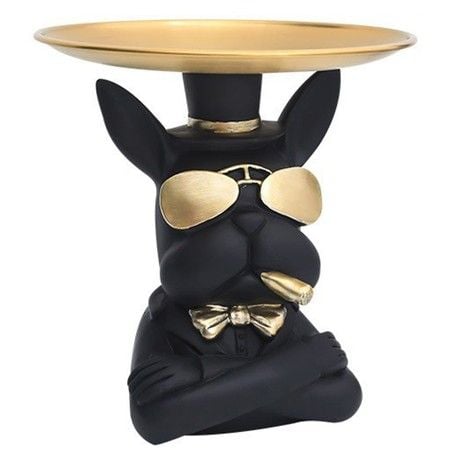 Resin Bulldog Statue French Bulldog Storage Key Holder Desk Candy Tray