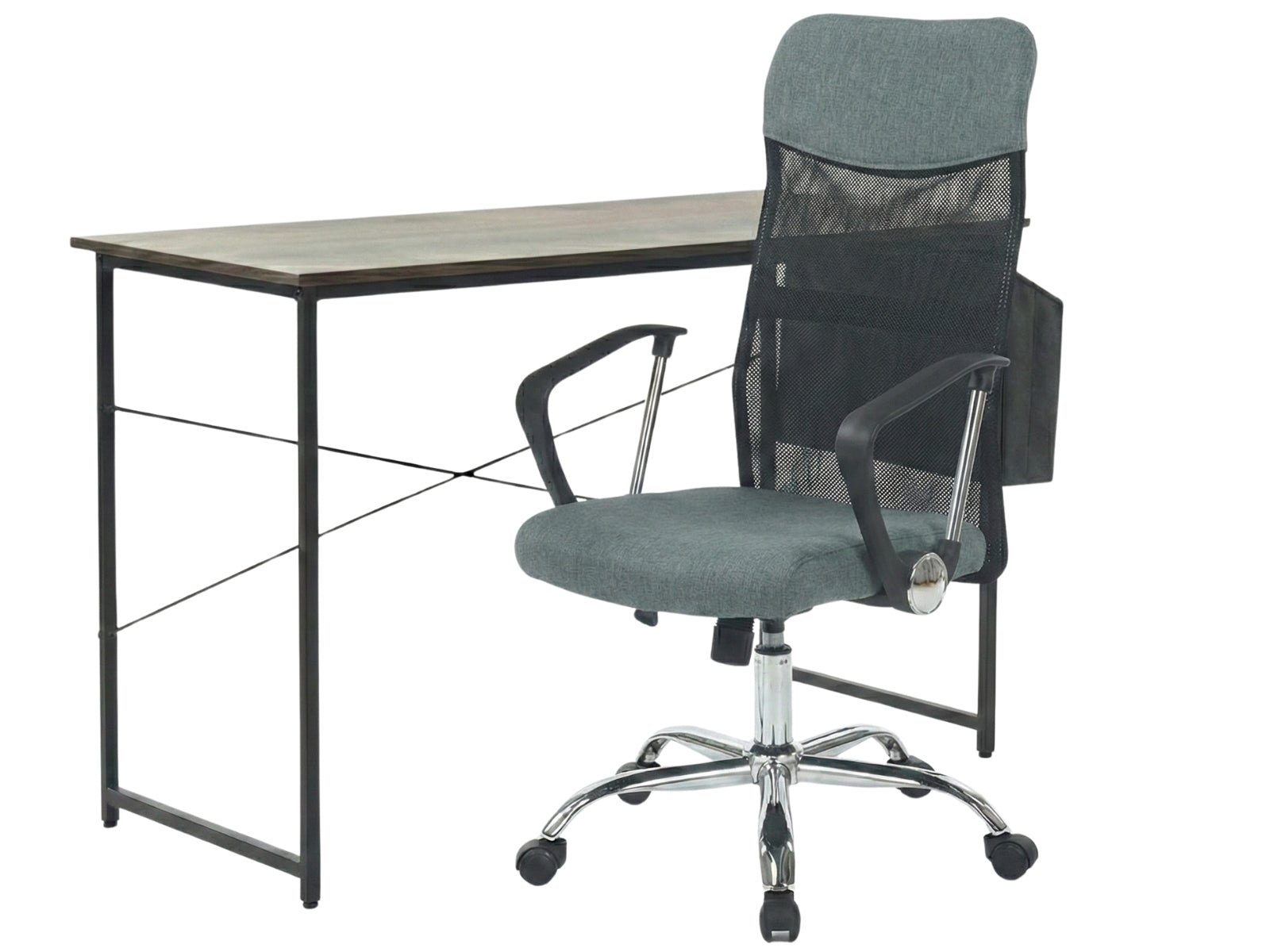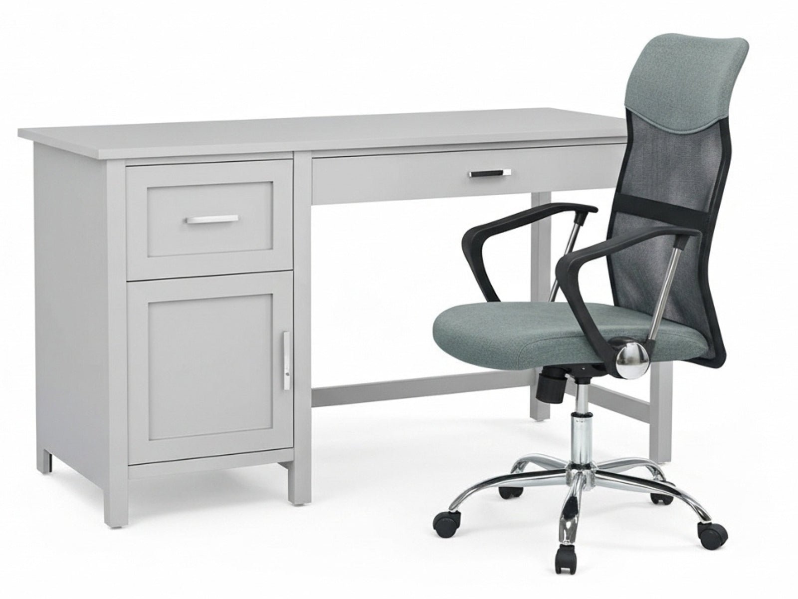 Home Office Desk with Storage Grey & Meshmallow Office Chair 001 grey (Combo)