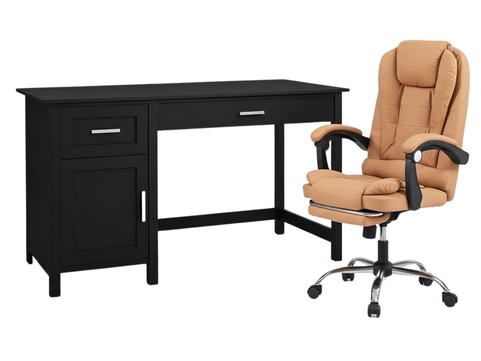 Home Office Desk with Storage Black & Colson Massage Office Chair PVC Khaki (Combo)