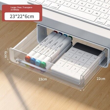 Under Desk Drawer Organizer Hidden Storage Box Office Supply Workspace Christmas Birthday Gift Transparent 23cm
