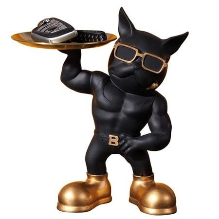 Bulldog Statue Desk Storage Tray Key Dish for entryway Table Home Decor Sculpture for Modern Art Office-Black