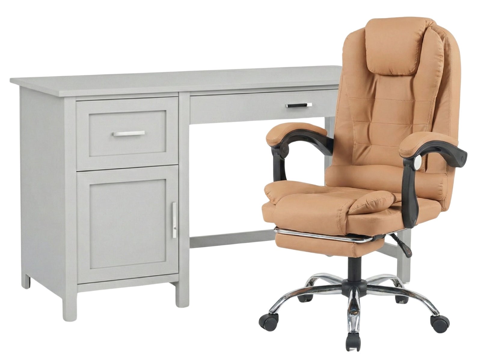Home Office Desk with Storage Grey & Colson Massage Office Chair PVC Khaki (Combo)