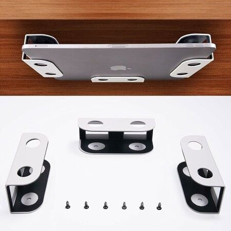 Under Desk Laptop Storage Mount, Metal Under Desk Device Holder, for Devices Up to 1.37 inch Thick, MacBook, Mini, Keyboard, Router, White