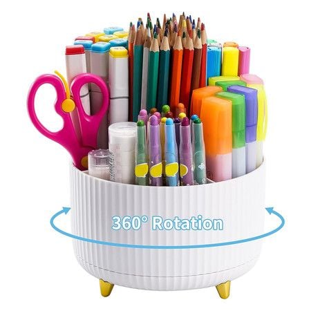 Desk Pencil Pen Holder,5 Slots 360 Degree Rotating Pencil Pen Organizer,Desktop Storage Stationery Supplies Organizer (White)
