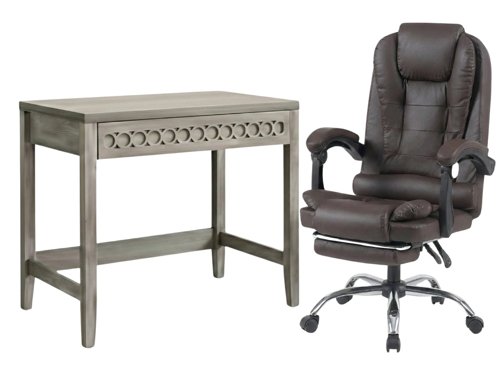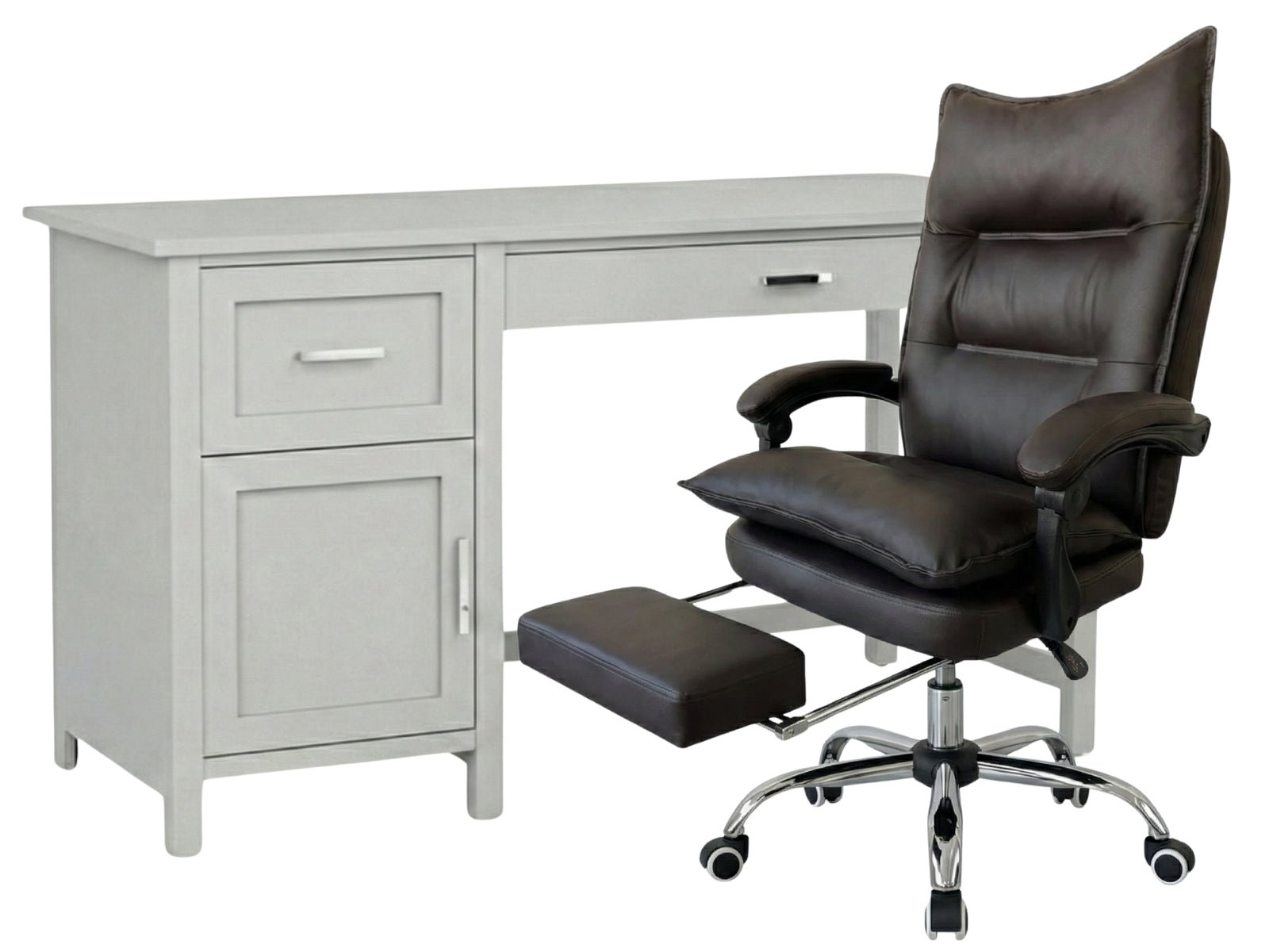 Home Office Desk with Storage Grey & New Markus Office Chair with Footrest PU Coffee (Combo)