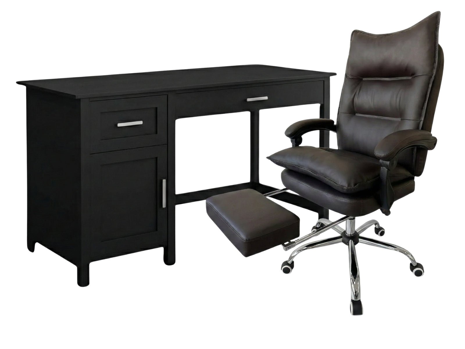 Home Office Desk with Storage Black & New Markus Office Chair with Footrest PU Coffee (Combo)