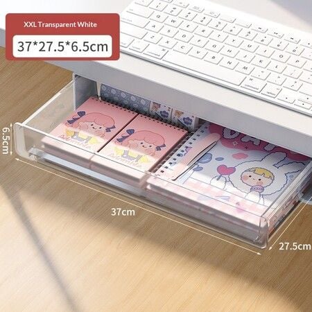 Under Desk Drawer Organizer Hidden Storage Box Office Supply Workspace Christmas Birthday Gift Transparent 37cm