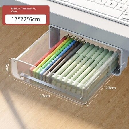 Under Desk Drawer Organizer Hidden Storage Box Office Supply Workspace Christmas Birthday Gift Transparent 17cm