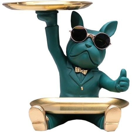 Bulldog Statue Desk Storage Tray Key Dish for Entryway Table Decoration-Green