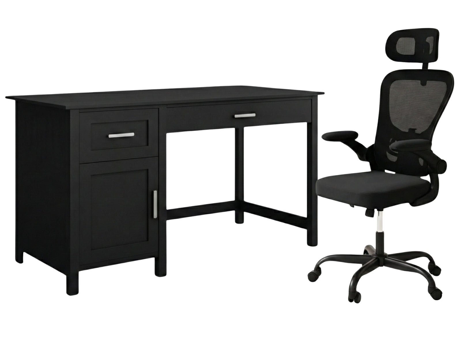 Home Office Desk with Storage Black & Molina Mesh Task Chair Black+Black (Combo)