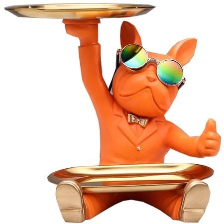 Bulldog Statue Desk Storage Tray Key Dish for Entryway Table Decoration-Orange