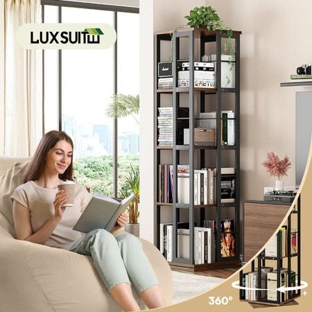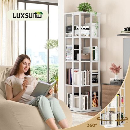 4 Tier Rotating Bookshelf Bookcase Storage Display Unit Vertical Corner Shelves Swivel Plant Flower Stand Heavy Duty Shelving Rack