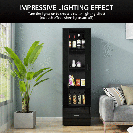 Glass Front Tall Display Cabinet 190cm Black LED Storage Unit with 1 Drawer 4 Shelves