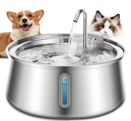 Pet Cat Water Fountain Filter Stainless Steel 25L Dispenser Dog Hydration Drinking Bowl Waterer Drinker Quiet USB Powered