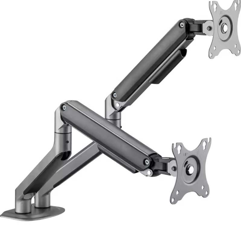 LUMI LDT10-C024 13-32 Aluminum Interactive Counterbalance Dual Monitor Arm. -90 +90 tilt, -90 +90 swivel, -90 +90 rotate. Max VESA 100x100. Max load 9kg.