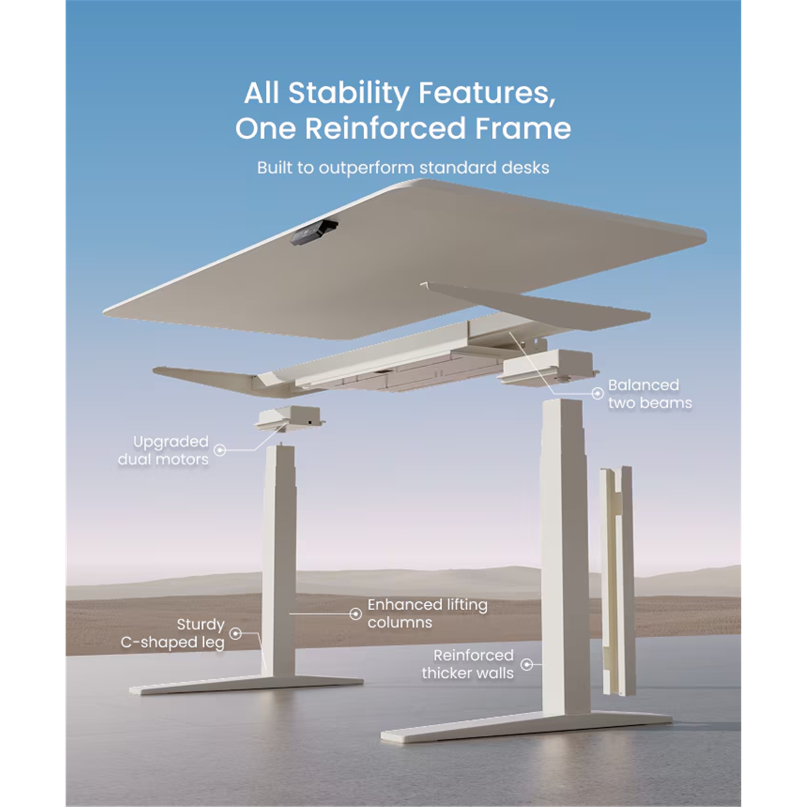 Stand Up Desk Frame Electric Sit and Standup Table Legs Base Adjustable Heavy Duty Standing Rising Underframe Dual Motor Carbon Steel White