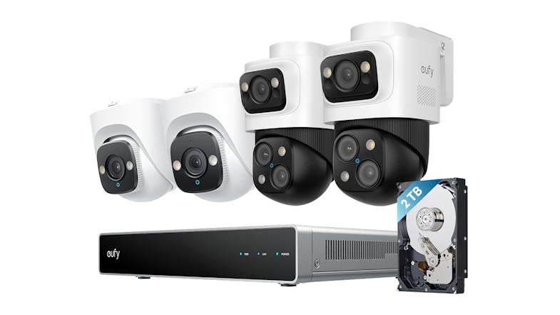 Eufy S4 Max 8 Channel 2TB NVR System with 4 4K Indoor/Outdoor Wired Security PTZ Camera -White/Black
