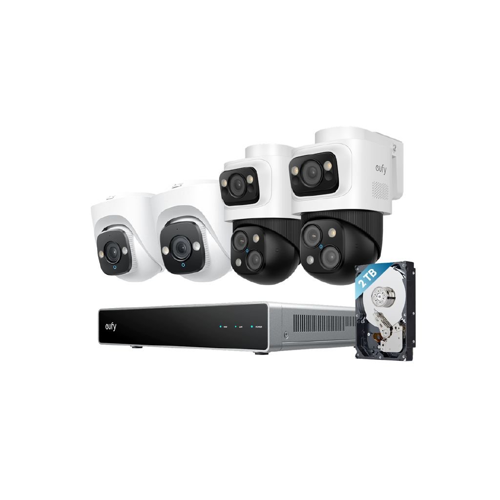 Eufy Security S4 8MP/4K 8 Channel NVR Security System with 2TB Storage Includes 2x Triple-lens PTZ PoE Cam S4, 2x Turret PoE Cam E41 / Support Up to 16TB Storage