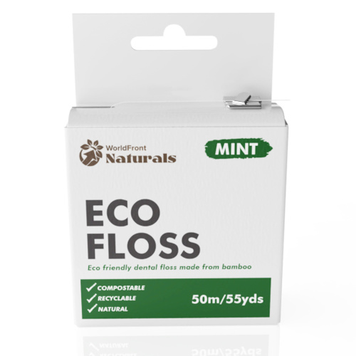 WorldFront Naturals Eco Dental Floss Ideal for Teeth Clean, Removing Plaque & Food Debris- Biodegradable Mint Tooth Flosses Made of Organic Bamboo- Compostable Plastic Free Packaging- 50m/55 yds